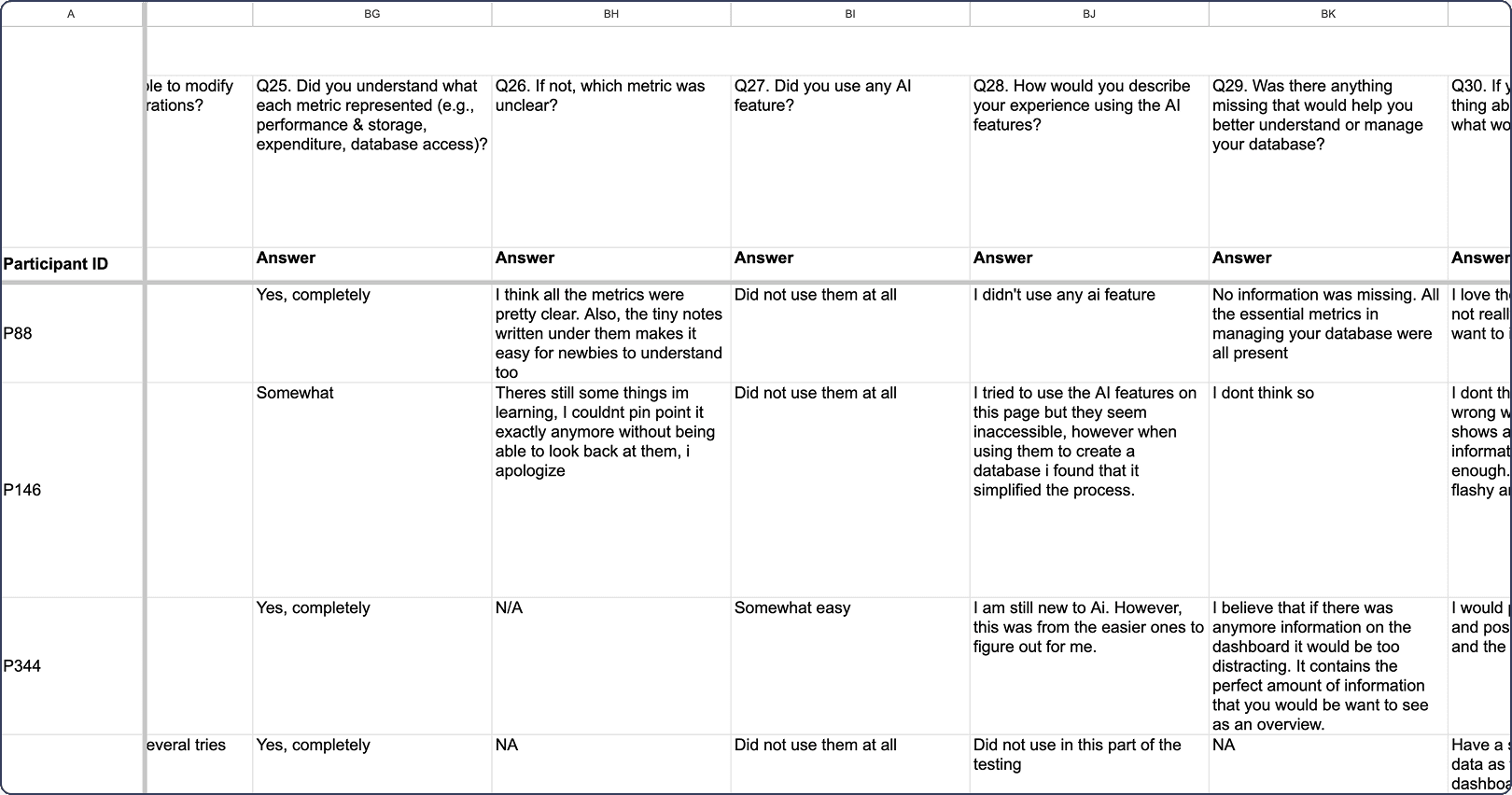 We tracked the unmoderated usability results via a spreadsheet.