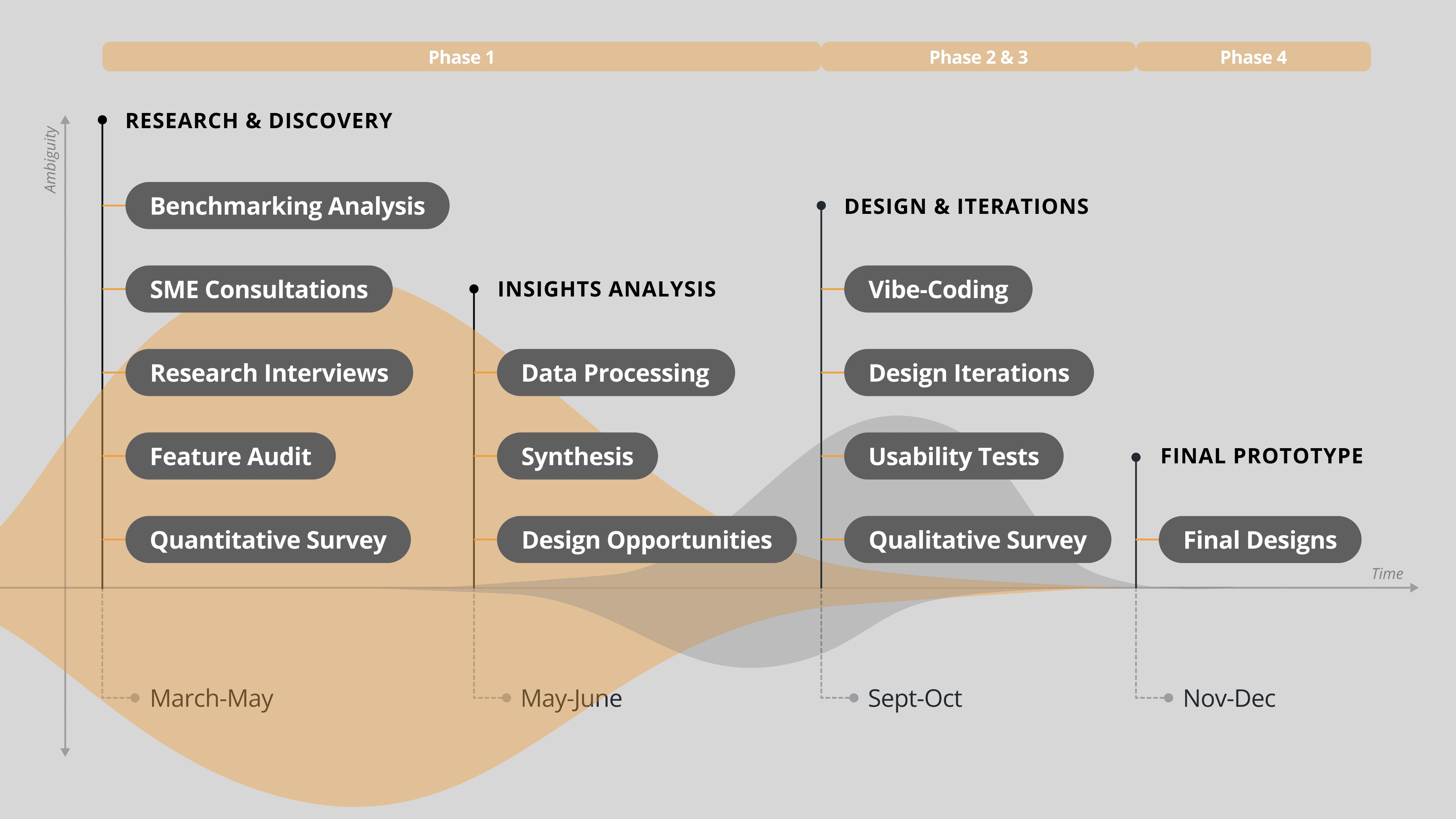 This phase (3 months) focused on learning the domain before designing within it